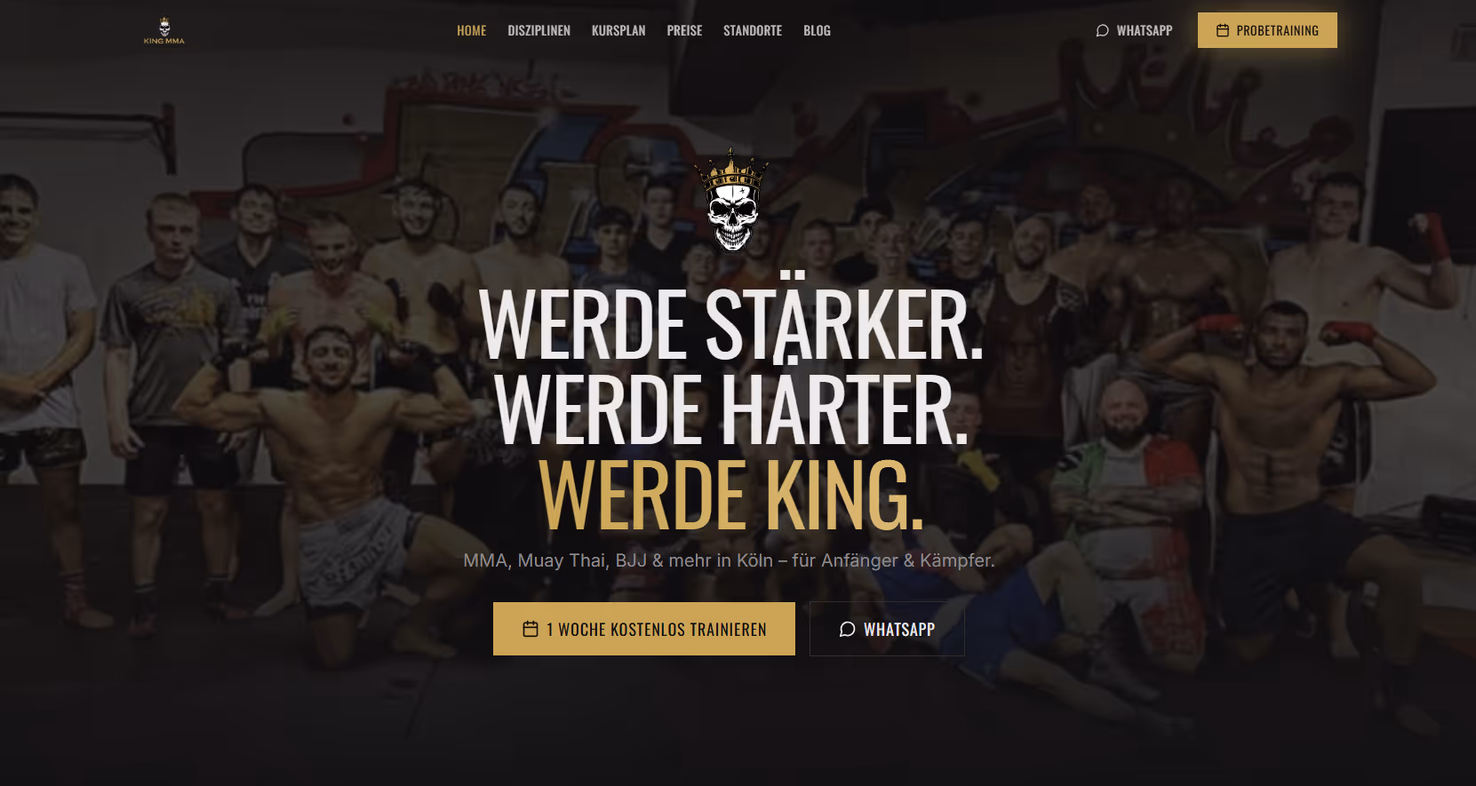 Modernisierung und Optimierung der Website, um gezielt mehr Kunden für das Kampfsport Gym King MMA zu gewinnen.